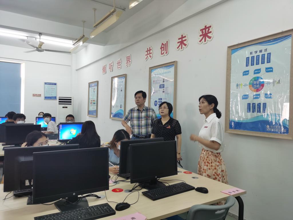 9月14日上午,经济管理系主任张少华、书记吴李霞,带领副书记洪菁、教学科长林惠玲、团总支书记曾雅娟深入课堂教学一线,检查、督导我系新学期开学第一天教学工作落实情况。